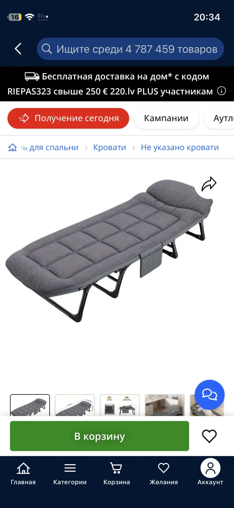 Хочу предостеречь всех от покупки на 220.lv. Купила раскладушку за 90+ евро, ориентируясь на фото с пышным матрасом. В итоге привезли дешевую подделку без матраса (просто ткань на раме), которая на китайских сайтах стоит максимум 40 евро.