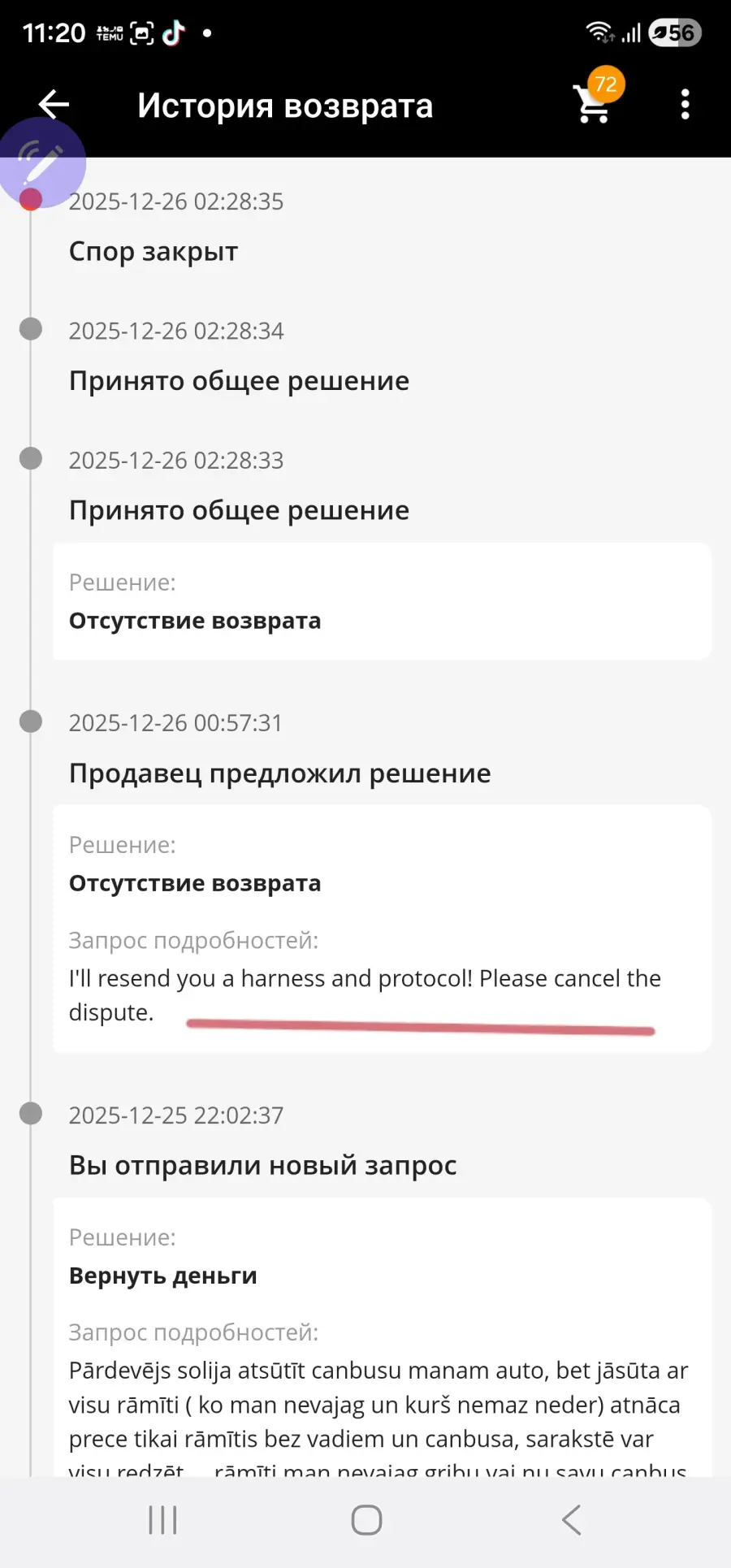 Šis ir pēdējais piliens, sameklēju preci, pārdevējs solās izsūtīt vadu un canbus bet jāņem ar rāmi, pārskaitīju 56e un atnāk tik rāmītis kas man neder un kuru man nevajadzēja. Atvēru strīdu, pārdevējs piekrita atsūtīt iztrūkstošo, kā strīdu aizvēru tā mani bloķēja, aliexpress atbalsts man nepalīdz, viss redzams bildēs