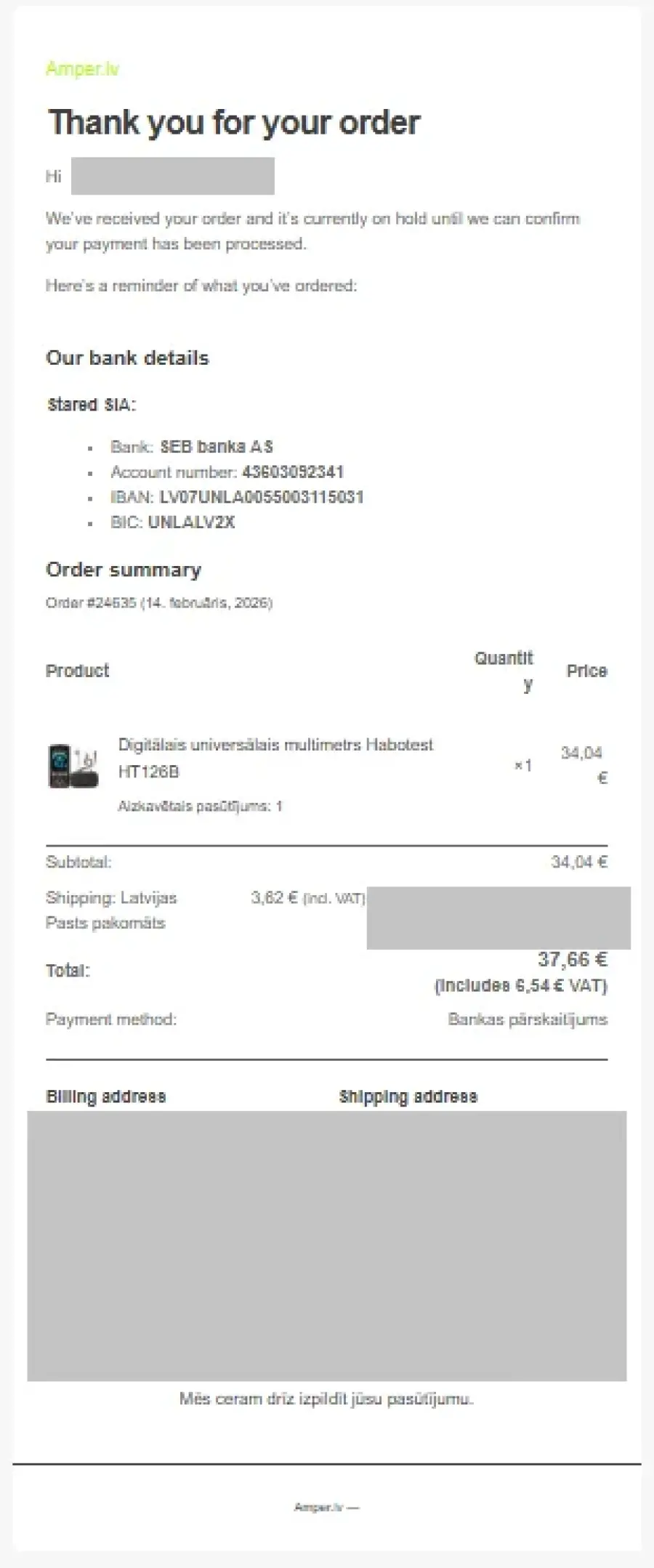 Februāra vidū samaksāju par pasūtījumu. Tā kā prece netika piegādāta, marta vidū rakstīju pārdevējam par pasūtījuma atcelšanu. Vairākas reizes rakstīju pārdevējam par naudas atgūšanu. Līdz šim brīdim pārdevējs nav atbildējis un naudu nav atdevis. Kopš preces apmaksas ir pagājuši vairāk nekā divi mēneši.