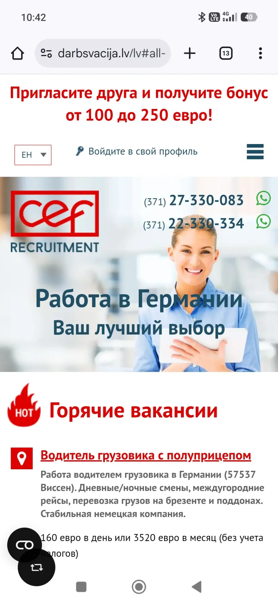 Хочу предупредить всех, кто рассматривает предложения от CEF Recruitment & Solutions, SIA (работают под видом “трудоустройства за границу”, в частности — в Германию).