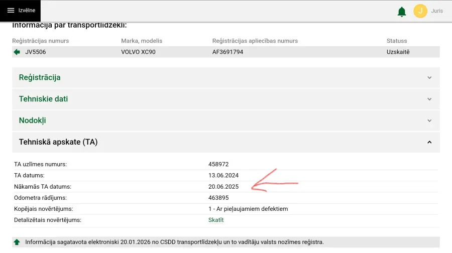 Labi tas viss ir skaidrs ka vēlas saņemnt ceļa nodokli par pagājušo gadu, bet problēma ir tajā ka kādēļ man ir jāmaksā ceļa nodoklis pēc apskates beigām ja tehniskā apskate beidzās Jūnijā.