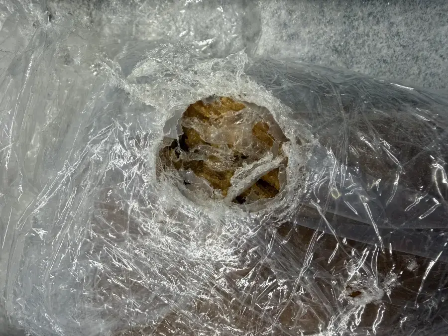 Izskatās ka kāds izsalcis darbinieks iekodās burbuļplēvē.