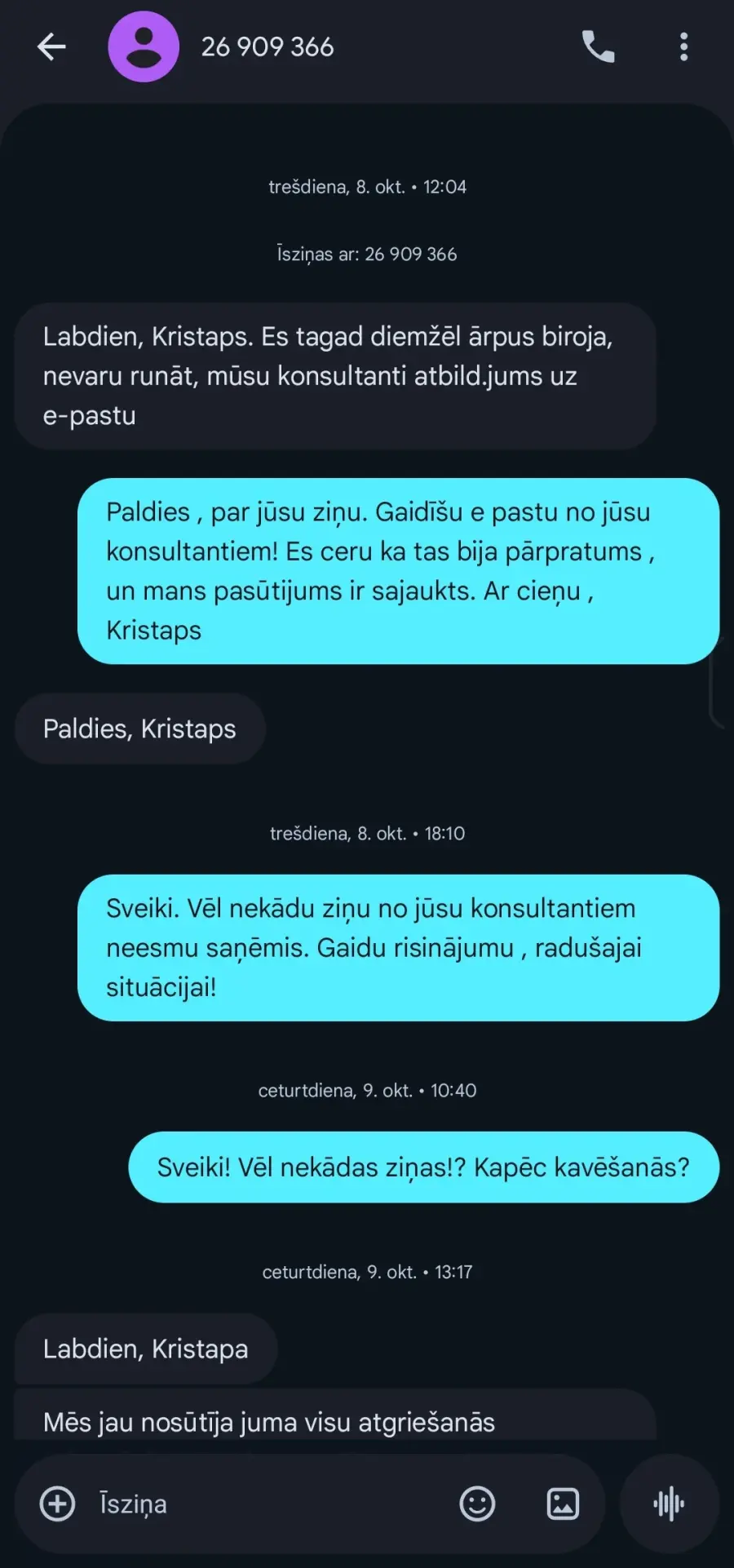 pirmais sketchy moments jau ir tas, ka ar uzņēmumu nākas sazināties caur sms :D Tev nav neviens jāgaida papildus, lai vērstos PTAC!