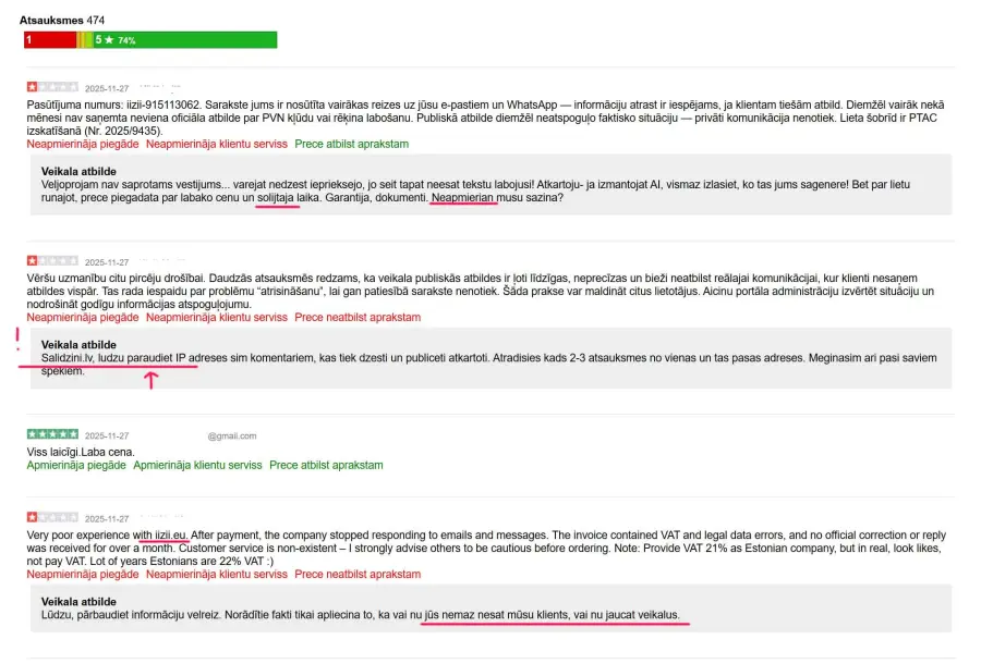 Iizii.eu - Neprofesionāla komunikācija, ignorē klientus un publiski izplata maldinošas atbilde