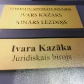 ▪ 1. Ivars Kazaks izmantoja tabuli ar uzrakstu “Zv. advokātu kolēģija”, lai radītu iespaidu, ka viņam ir zvērināta advokāta statuss.