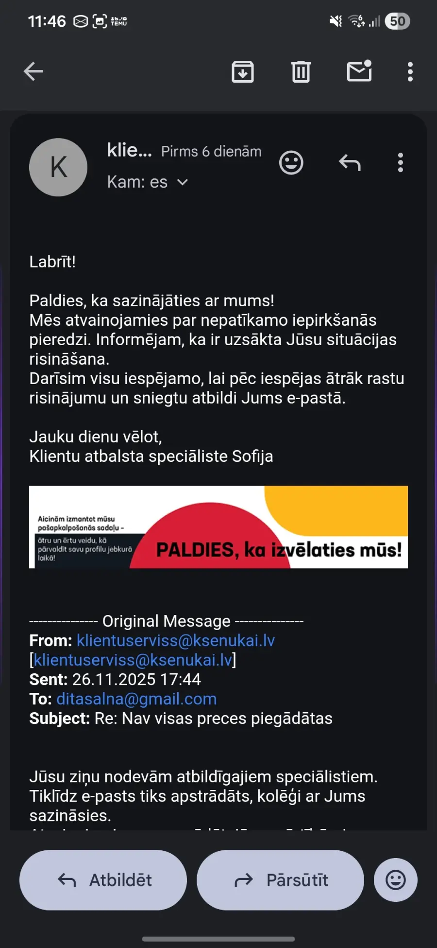 K Senukai - Slikts servis, nepiegādātas visas preces