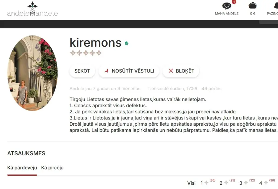 PS-ja pērkat kaut ko andelē-mandelē, palasiet atsauksmes par pārdevēju (grūti atrodamas, it īpaši, ja neesi regulārs lietotājs, bet ir). Šai personai ir negatīvas atsauksmes jau no 2020.gada (!).