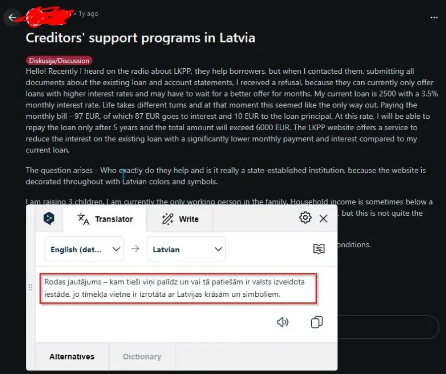 Nosaukums “Latvijas kredītņēmēju palīdzības programma”, mājaslapas adrese LKPP.lv un reklāmās izmantotie Latvijas karogi rada iespaidu, ka tā ir kāda valsts atbalsta programma kredītņēmējiem, lai gan patiesībā tas ir privāts kredītu starpnieks.
