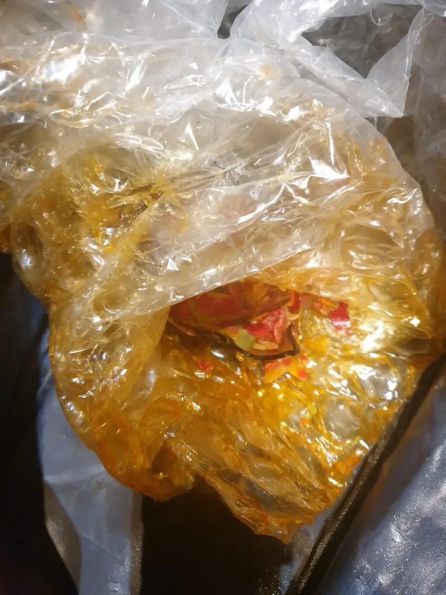 Smaržu pudelites gabalos, burciņa kas bij riktīgi burbuļplēvē ietīta, sasķaidīta. Viss pārējais no mitruma sabojāts, kartiņas un zīmējumi kas no mazbērniem, drēbes.