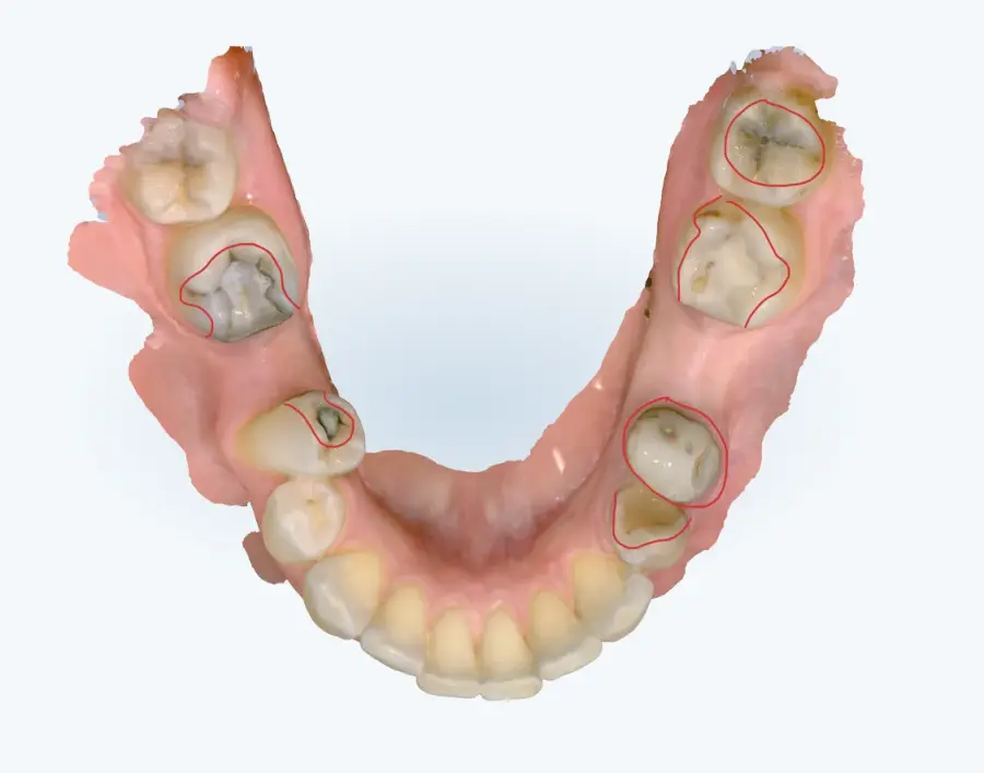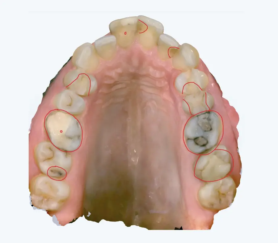 Papildus norādām, ka arī no intraorālās skenēšanas datiem (tostarp ekrānšāviņiem) ir identificējamas vairākas klīniski nozīmīgas problēmas, tai skaitā: