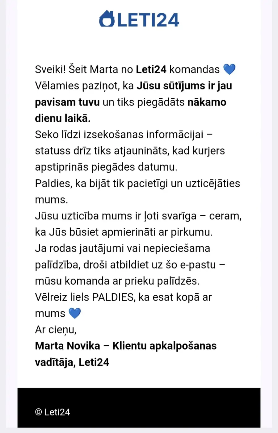 Līdz 13.01.2026 pasūtījums nav piegādāts