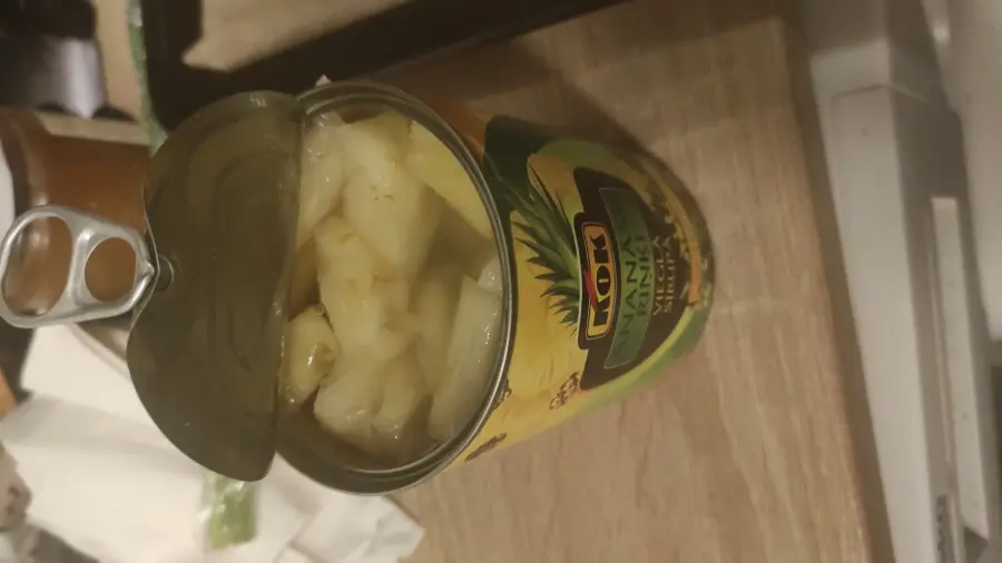 Paņemu ananāsu riņķi, iekšā bija gabaliņos