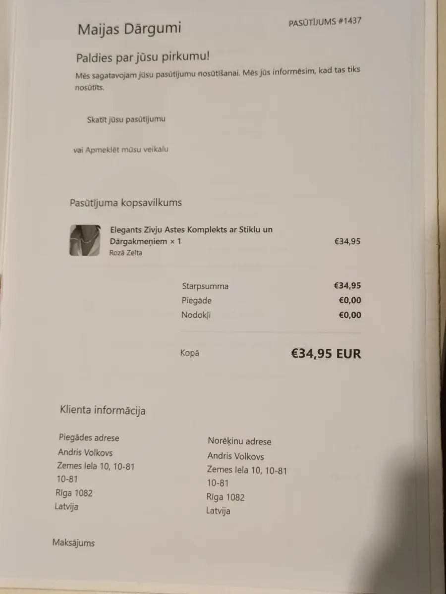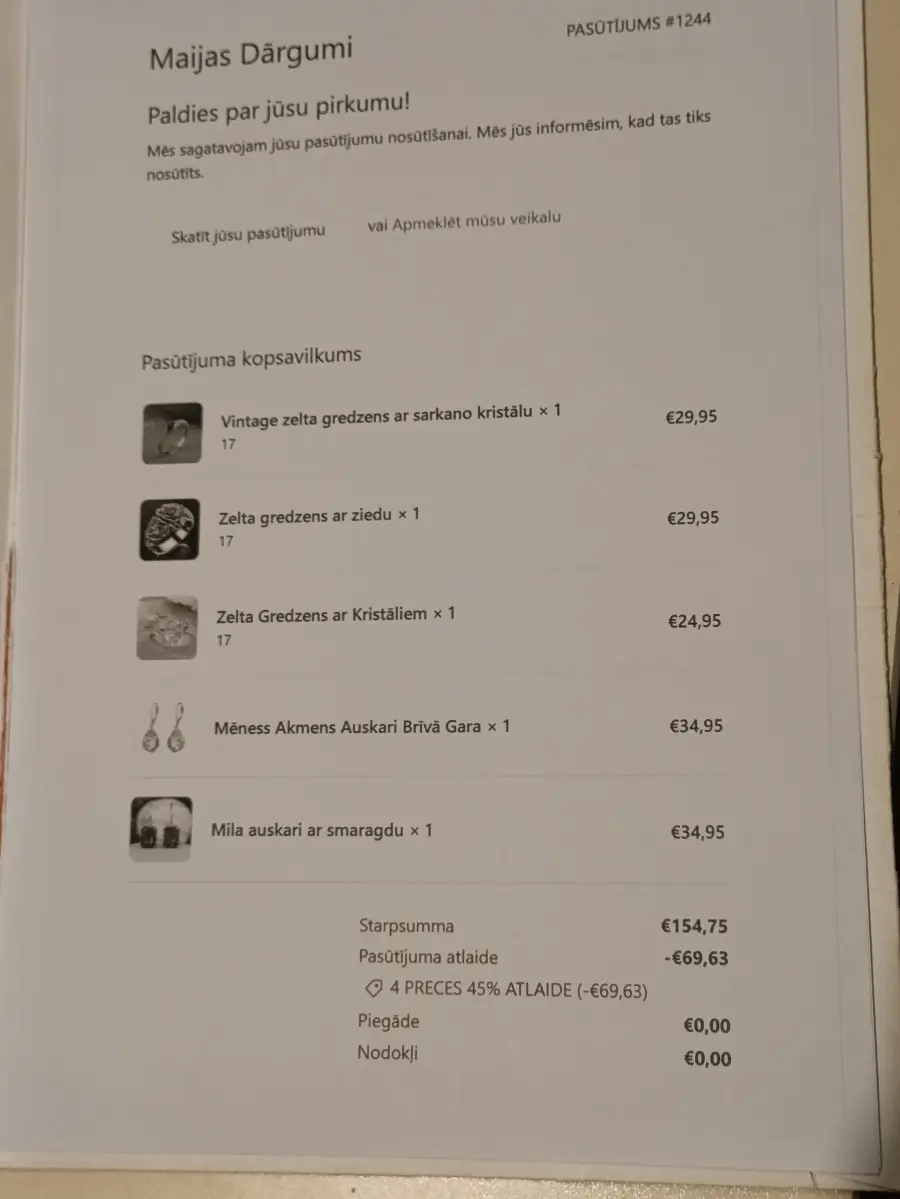 "Maijas dārgumi" savu "amatniecības" darbu ir bāzējuši ,, kā izskatās pēc piegādātās preces - juveliera izstrādājumi no dārgmetāla,, Ķīnā!