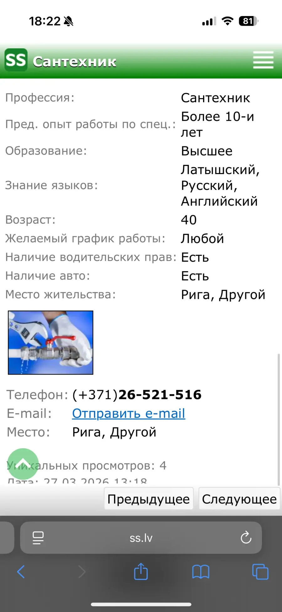 Vēlos brīdināt citus par ļoti negatīvu pieredzi ar santehniķi no ss.lv.