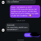 8. janvārī, sazvanoties ar telpas pārstāvi, lai noskaidrotu, vai tika veikta rezervācija, jo uz ziņām netika atbildēts vairāk kā nedēļa, tiku informēta, ka telpās notiks uzlabojumi un paredzēta jaunas konstrukcijas izbūve. Kad jautāju, vai nebūs tā, ka paziņos pēdējā brīdī, ja tomēr nepaspēs laicīgi, tika uzsvērts, ka gadījumā, ja radīsies jebkādas izmaiņas, mani laicīgi informēs, lai varētu attiecīgi plānot bērna svētkus.