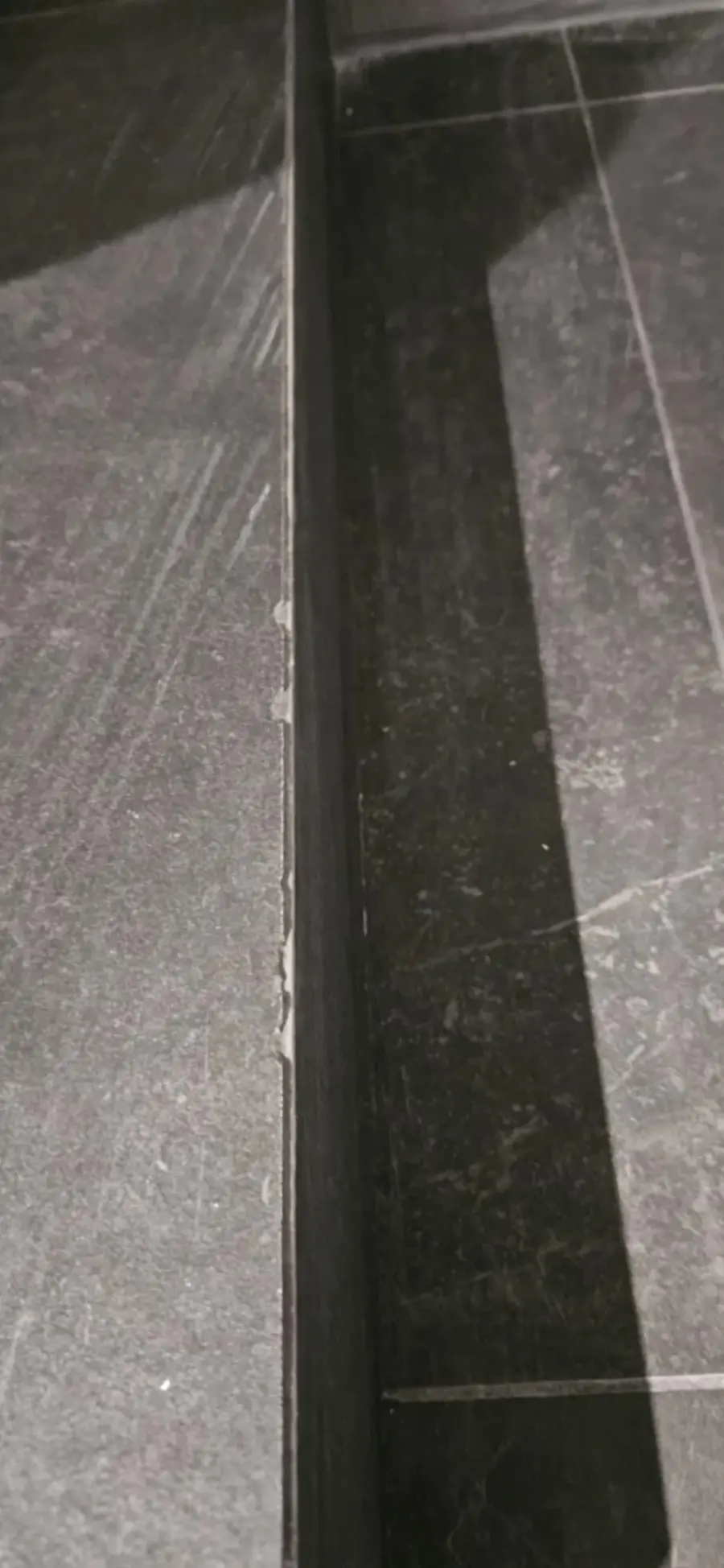 45° stūri (apmaksāti atsevišķi) — visi ar šķembām. Solīja salabot ar epoksīda šuvju masu, bet joprojām novelk atbildību, apgalvojot, ka to vajadzēja iegādāties mums.