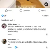 Pasūtīju un apmaksāju mēbeles no šīs kompānijas aprīlī. Pasūtījumā rakstīts, ka mēbeļu piegāde būs no 2-3 mēnešiem. Jūnijā zvanīju/rakstīju pirmo reizi, lai apjautātos, vai par termiņiem viss ir spēkā, uz ko man atbildēja, ka 3 mēneši nav pagājuši un nav vērts ātrāk zvanīt. Pieņēmu šo atbildi, par cik pavadzīmē bija minēti 2-3 mēneši. Pagāja 3 mēneši, zvanīju jūlijā. Jūlijā man atbild, ka diemžēl jūlijā Polijas ražotnes nestrādā, jo visi darbinieki atvaļinājumā. Pie sevis nodomāju - dzīvojam taču kapitālismā, kā var atstāties ražotnes darbi, it īpaši, ja ražotnē ir liels pieprasījums, bet labi. Zvanu augustā, atbilde tā pati - Polijas ražotnē jūlijā bija atvaļinājumi. Prasīju, vai ir iespēja noskaidrot, kādā stadijā ir prece - daļēji saražota vai tomēr nav sākts pat ražot? Atbildes nebija, viņi iedeva iepirkumu speciālista numuru - zvanīju, rakstīju whats appā , nekādu atbilžu. Zvanu septembrī vēlreiz un man saka, ka 3 nedēļu laikā jābūt. Pārgaidījusies, ne līdz galam priecīga domāju, ka sagaidīšu. Pienāk septembra beigas, iepriekš minētās 3 nedēļas pagājušas, zvanu vēlreiz un saku, ka, ja mana prece nav atvesta vēlos saņemt naudu atpakaļ, uz ko viņi atbild “Jā labi, atsūtiet e-pastu, ka atsakaties no pasūtījuma”. Solīja naudu ieskaitīt 5-10 darba dienu laikā - pienāk 10. Darba Diena un naudas kā nav, tā nav. Rakstu viņiem, ka neesmu naudu saņēmusi, uz ko viņi atbild, ka tas nav atkarīgs no viņiem, ka naudas atgriešana atkarīga no programmas. (Pilnīgi meli, manuprāt) 11.darba Dienā Rakstu e-pastu, uz ko nav atbildes. 12. Darba dienā nauda tika atgriezta.