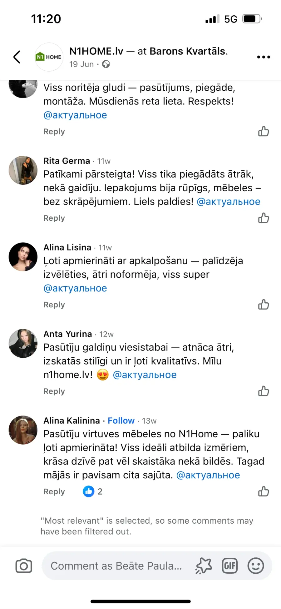 -N1Home Facebook lapā tiek maldināti cilvēki, jo kompānija nopirkusi vai likusi konkrētiem cilvēkiem rakstīt labas atsauksmes zem viņu postiem, jo daudzu cilvēku vārdi atkārtojas zem katra posta, ko kompānija liek dažādos datumos.(Pielikumā attēli)