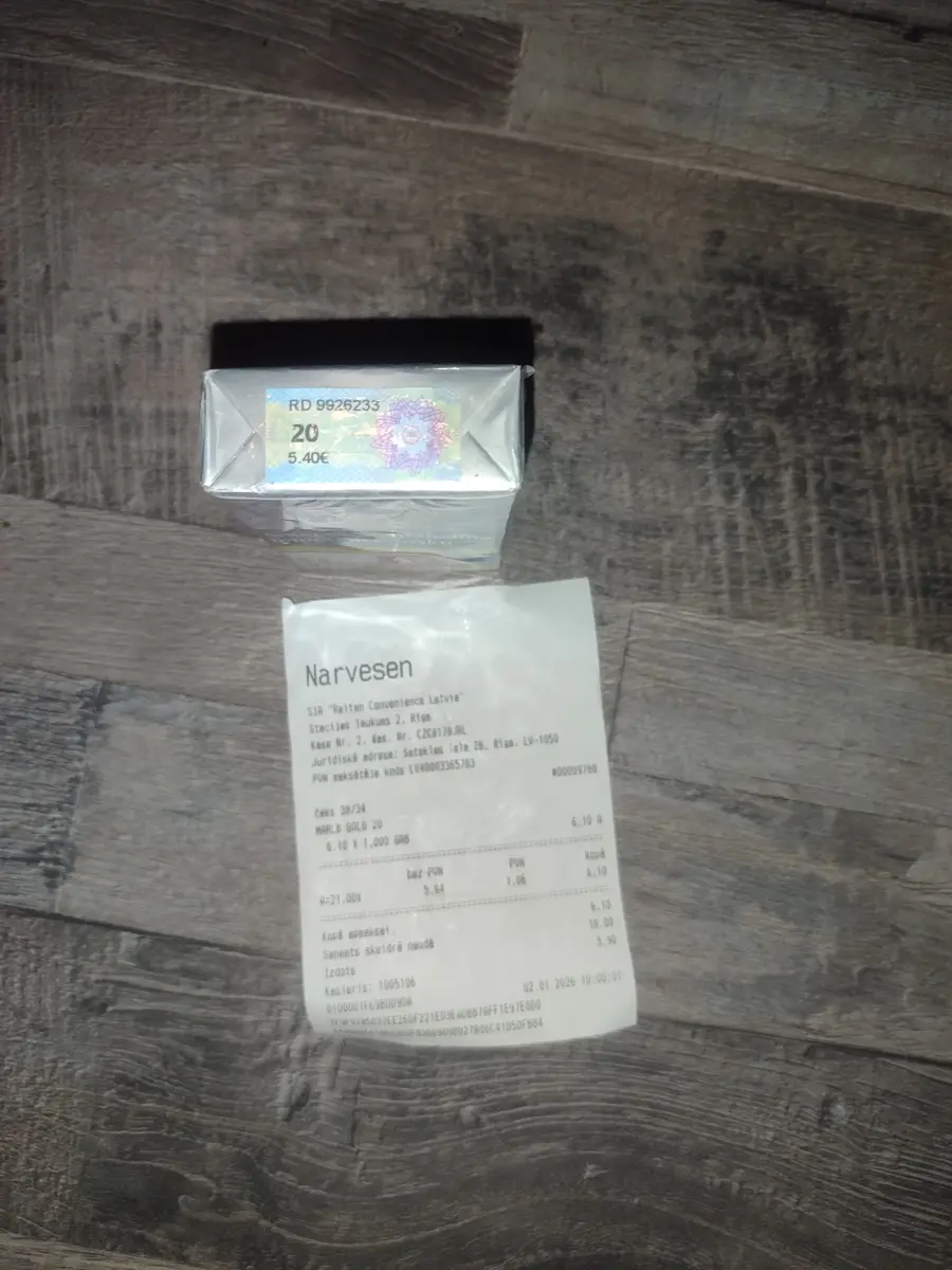Iegādājos šodien cigaretes narvesena paciņas norādīts 5.40€ bet čekā 6.10 vai tā nesanāk krāpšana?
