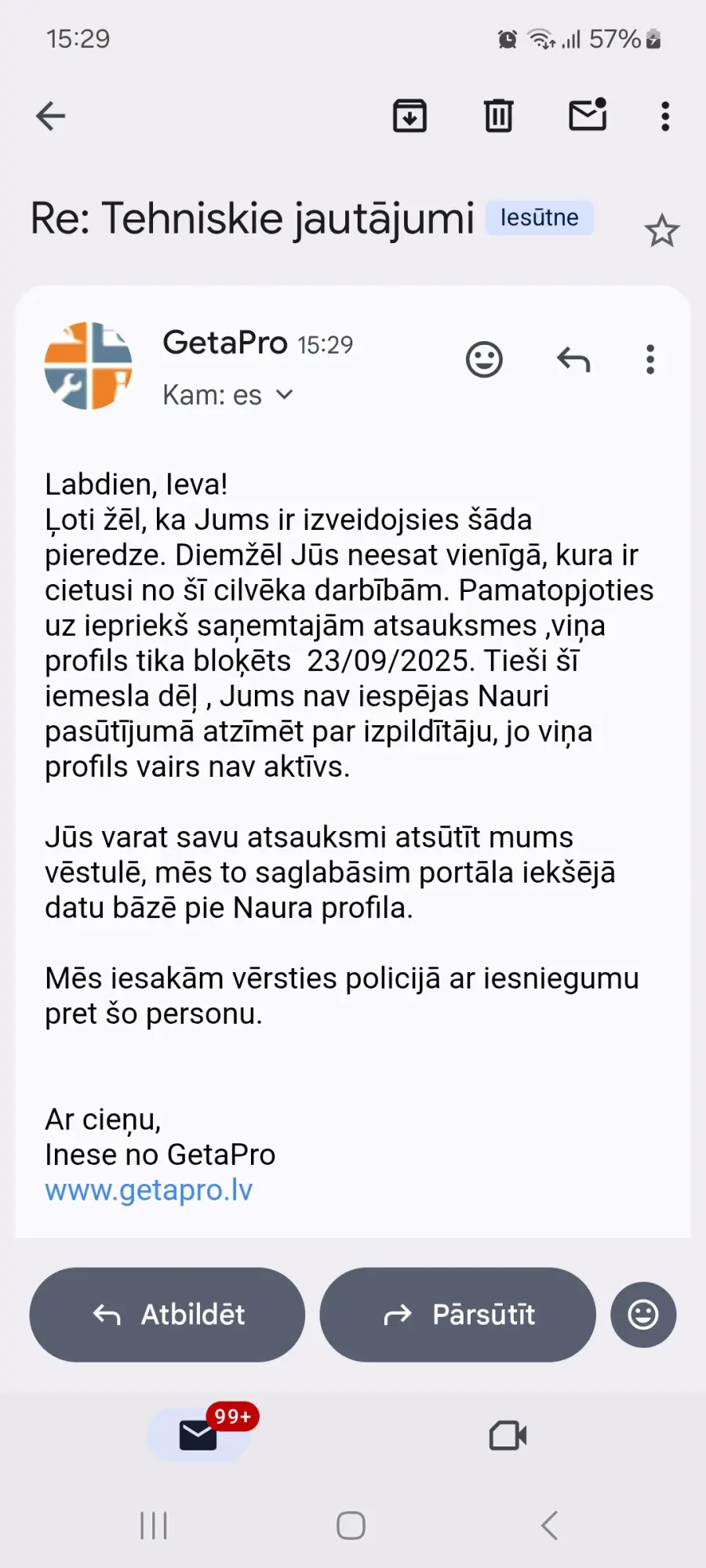 Naura telefona nr. šobrīd - 20085231. Skatos, ka par viņu arī šeit ir vēl viena sūdzība un tik tikko Get a pro man atbildēja, ka viņa profils esot bloķēts, jo neesam vienīgie apkrāptie. Esat uzmanīgi un izvētrējiet, kam maksājat savu naudu.