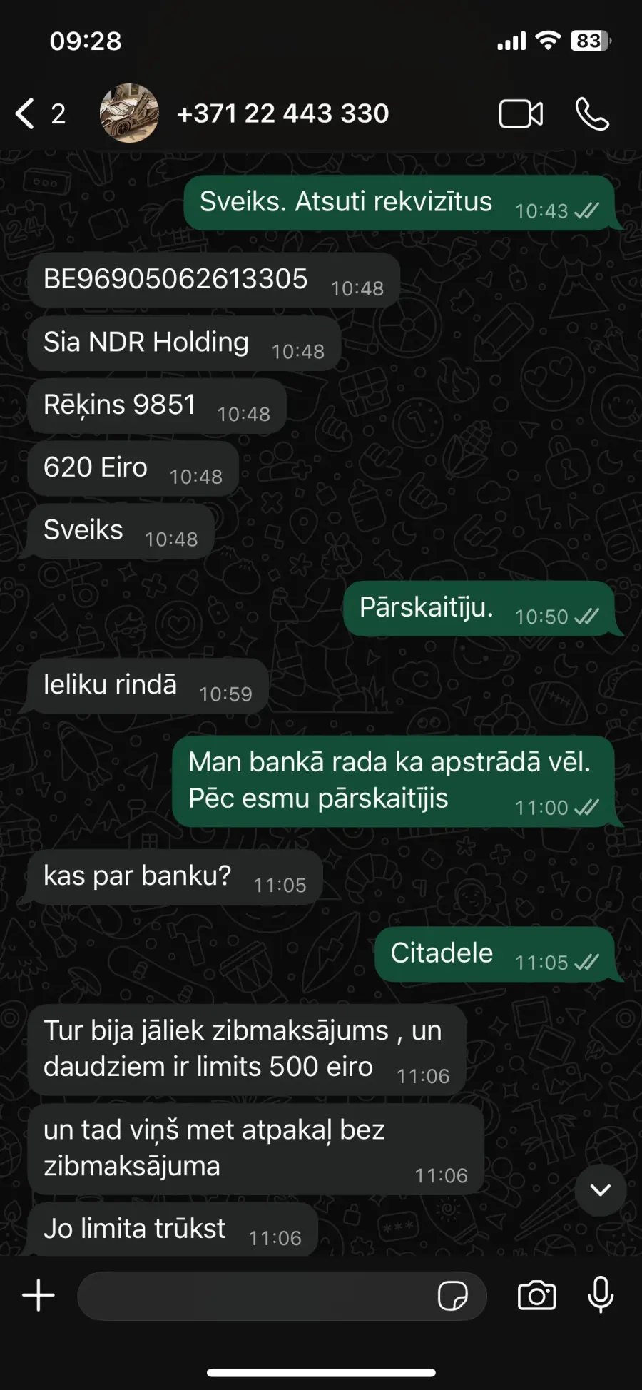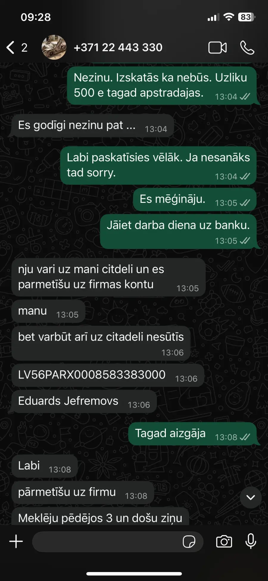 Kārļa Mīlenbaha iela 7 -28 . Tā kā viņš nodarbojas ar mobilo tirgošanu no amazon box. Un pie viņa esmu pircis vairākus mobilos pa labam cenām. Viss bija labi. Tad šogad viņš TikTok vietnē kur es viņam sekoju izteica ka meklē cilvēkus kas varētu piedalīties kopējā pirkumā ar Amazon Box. Un gūt pelņu. Nu tad es piekritu viņa piedāvājumam. Pārskaitīju viņam uz privāto Citadeles bank kontu. No sākuma izgāja uz kontaktu bet dienām ejot jau uz kontaktu neiziet. Solīja vienu dienu kad atmaksas tad citu un vēl citu. Un beigas vispār pazuda. Tā kā devu viņam laiku lai iznākt uz kontaktu un atskaita naudu bet nekā. Uzrakstīju policija iesniegumu un pievienoju visu watsup saraksti un bankas izdruku ar. Tagad gaidām. Cerams ka esmu vienīgais kas iekrita uz to piedāvājumu.