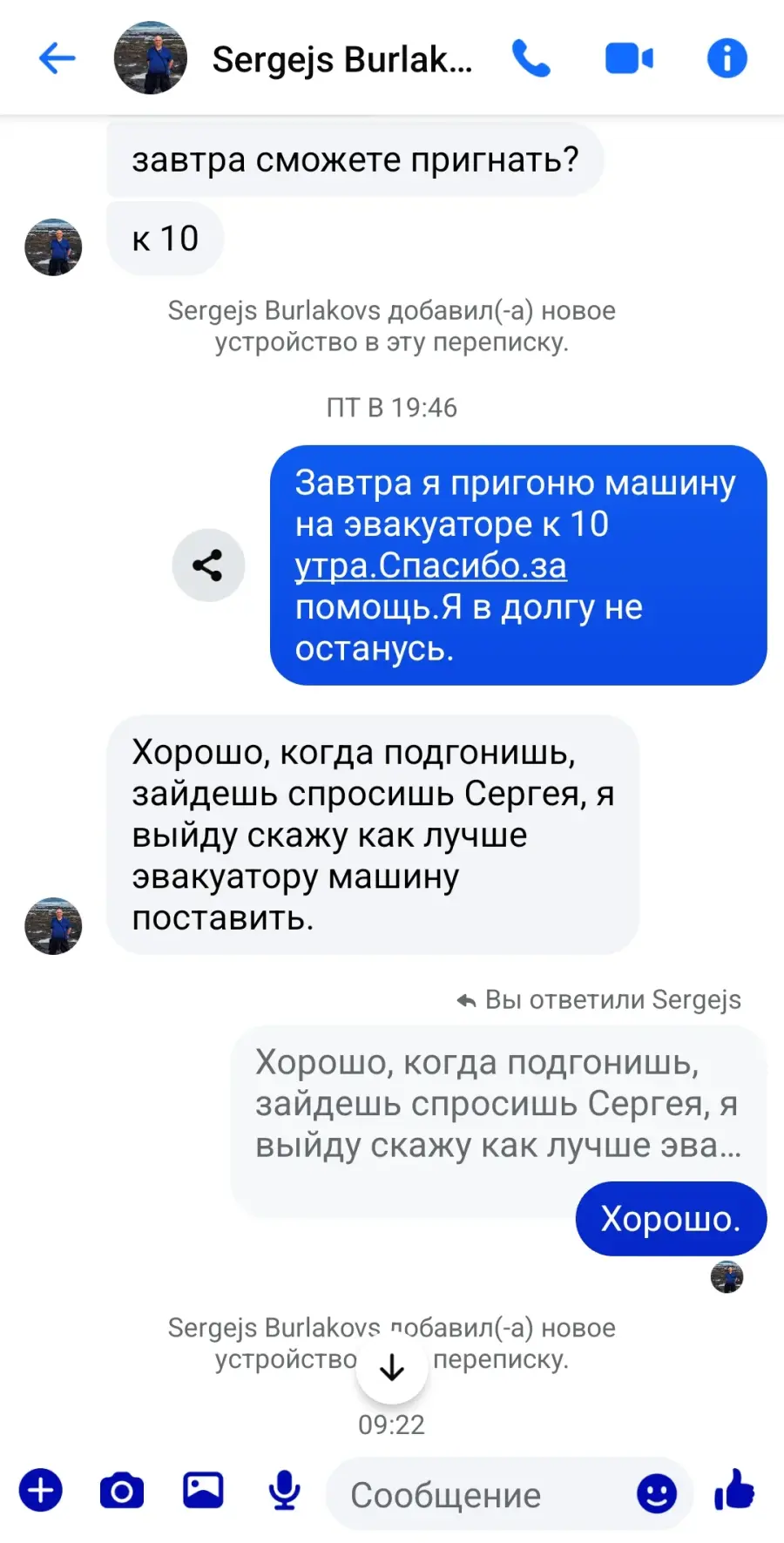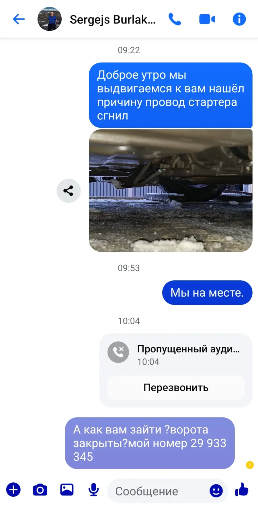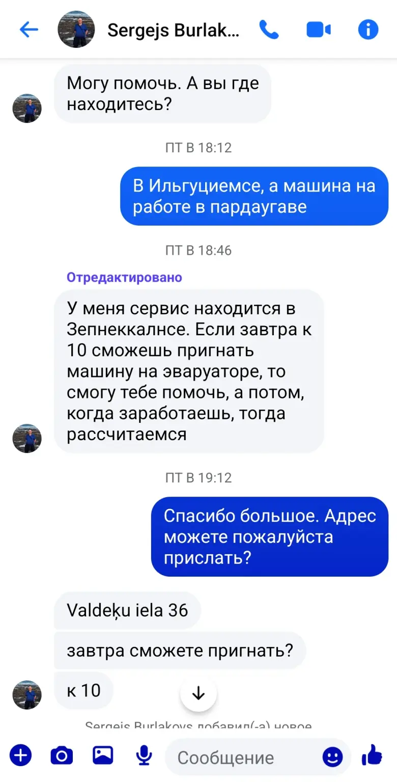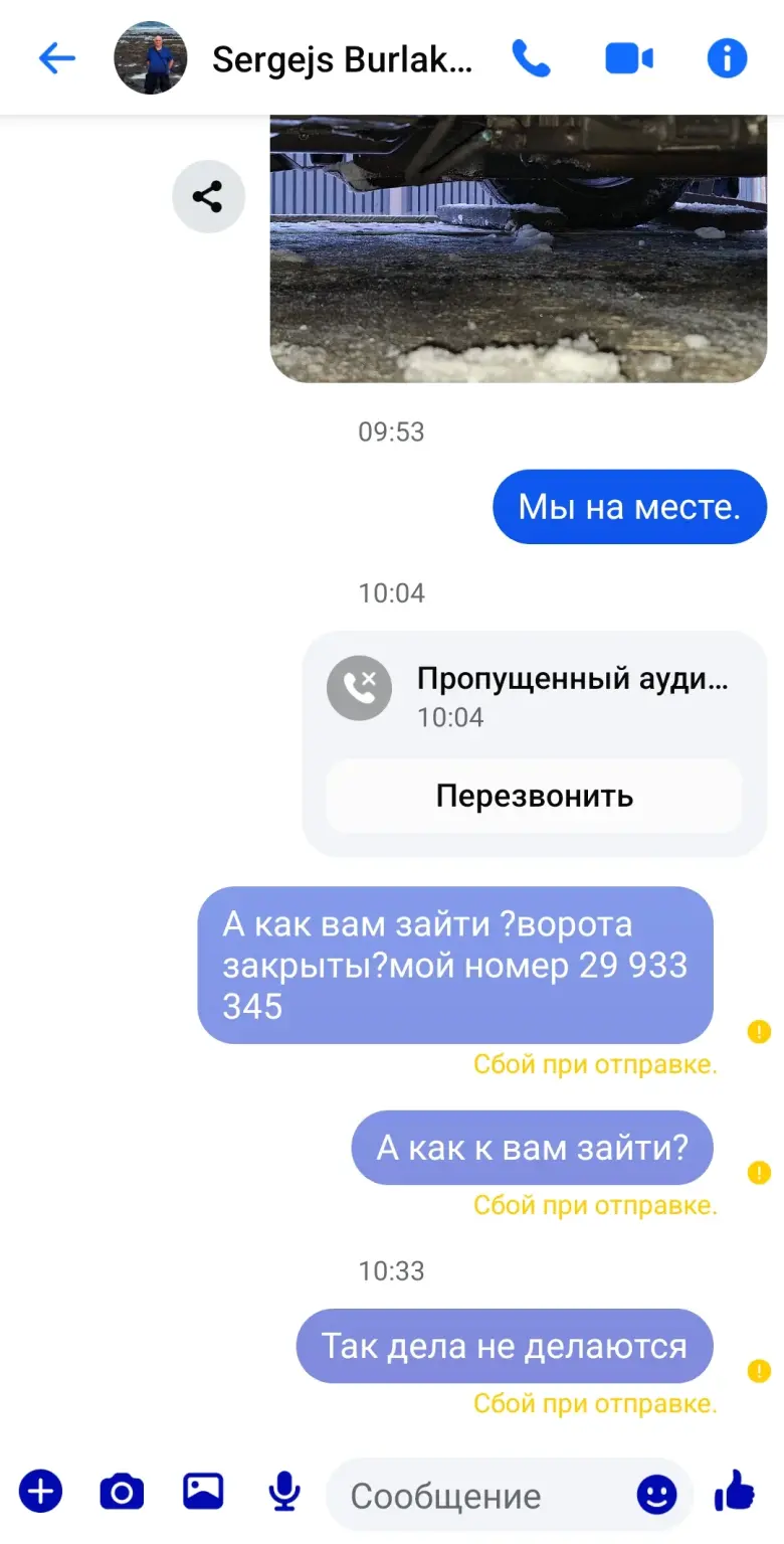 Хочу предупредить людей,что бы не приезжали чинить машины в этот сервис и дело не имели с этим человеком Sergejs Burlakovs с Baltik Kars BC .Договорились сегодня я пригоню машину на эвакуаторе и он ее возьмёт на ремонт.Взял утром эвакуатор и поехали грузить машину,погрузили приехали по адресу Valdeķu iela 36 к 10 утра,как и договаривались, ворота закрыты и на сообщения не отвечает,а потом в месенджере вообще заблокировал меня.Ну так знай Сергей Бурлаков ты не меня кинул, ты репутацию потерял и доверие.А ее в наше время заработать очень тяжело.Бумерангом тебе все вернётся.
