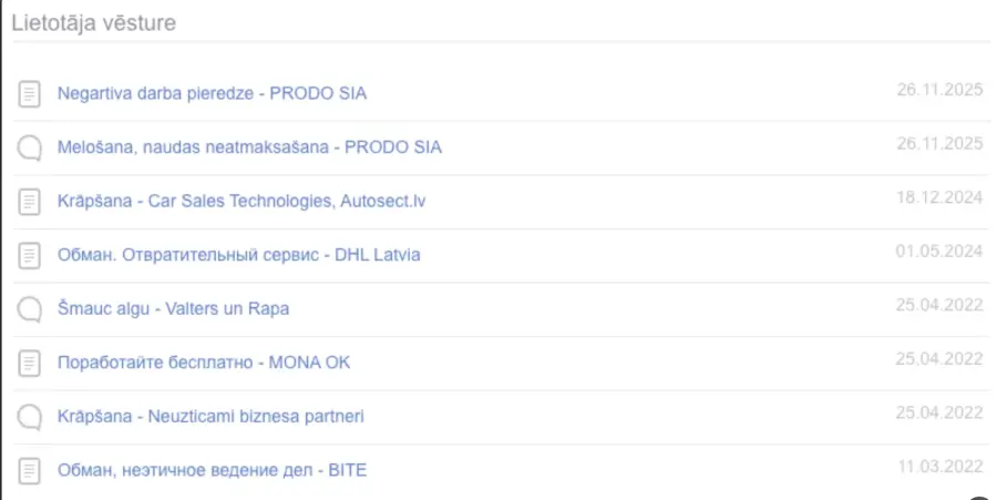 • un divi negatīvi ieraksti par PRODO SIA – 26.11.2025