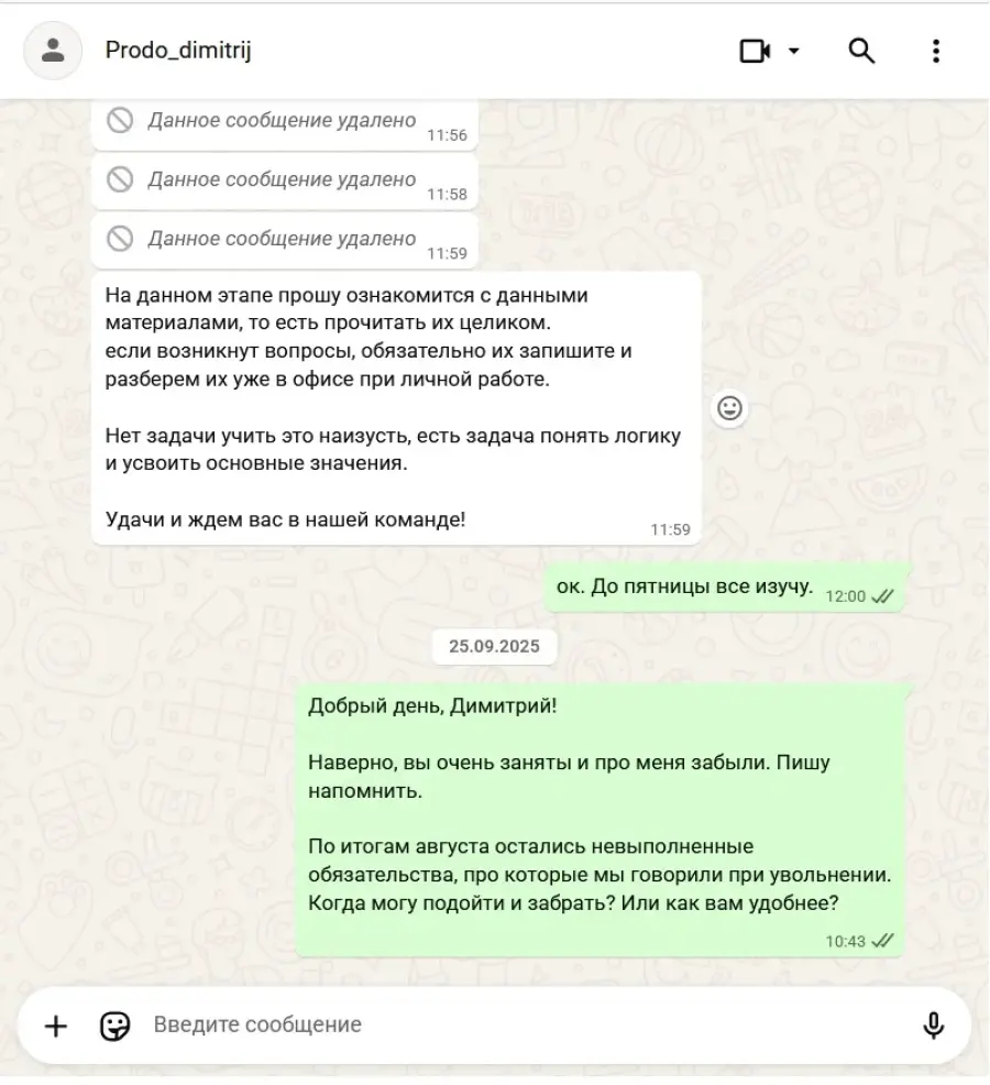 Pēc darba attiecību izbeigšanas Aleksejs nevienu reizi neiesniedza uzņēmumam jautājumus, pretenzijas vai lūgumus paskaidrot kādus jautājumus. Vienīgā saziņa no viņa puses bija iesniegums Darba inspekcijā, kurā tika apgalvots, ka pret viņu izturēts netaisnīgi. Pārbaudes procesā šie apgalvojumi neapstiprinājās.