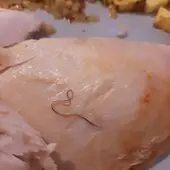 Mēnesi atpakaļ iegādājos Ķekavas veikalā paprāvu daudzumu vistas gaļas, kā ierasti-ik mēnesi iepērkamies Ķekavas veikalā jo uzticamies vietējiem ražotājiem un viata mūsu ģimenē ir iecienīta. Šašliki vasarā, fileja, spārni, kājas, desas... iepērkam lielāku daudzumu un glabājam saldētavā. Nu bija pagājis paprāvs laiks un Saldētava bija manāmi patukšota, un ķērāmies klāt marinētajam cepetim. Griežot sulīgs, smaržīgs, līdz sāku vistas dalīšanu, manu uzmanību nekas nepiesaistīja. Ieliku vistu šķīvī-nonācu līdz kumosa likšanai mutē un ieraudziju mazu sarkanu punktiņu. Paurbināju ar dakšu un redzētais man gandrīz lika sākt vemt. Vistā bija parazīti. Bērni un vīrs jau paēduši. Vakariņas izbojātas... pēc aptuveni 2 nedēļām biju plānojusi dot iespēju pēdējai palikušajai filejai- nožēloju. Piesardzība lika griezt uzmanīgi un pārbaudīt- un atkal! Pretīgi!