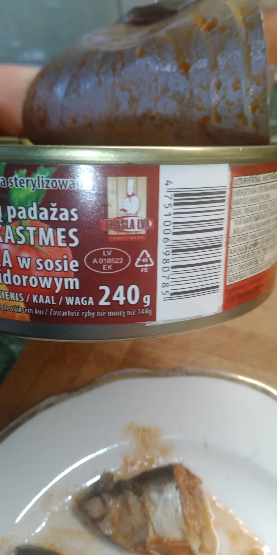 Agrāk bija aknu pastēte a tagad ir pastēte ar aknu garšu, lai gan nav samelot, sastāvā tikai 23% cūku aknu, bail iedomāties kas ir pārējie 77%, vai tie ir ragi un nagi? No pastētes vien tikai smaka, produkts atgādina slapjo kaķu baribu bet ar mazāk galu. Rakstot atcerējos pec logo, ka no braslas biju ņēmis vēl sliktākos zivju konservus mana mūža, brētliņas bija burtiski pus jēlas ļaut kāda sarkanīgā sulā kura atgādina maximas lētāko kečupu atšķaidītu ar ūdeni