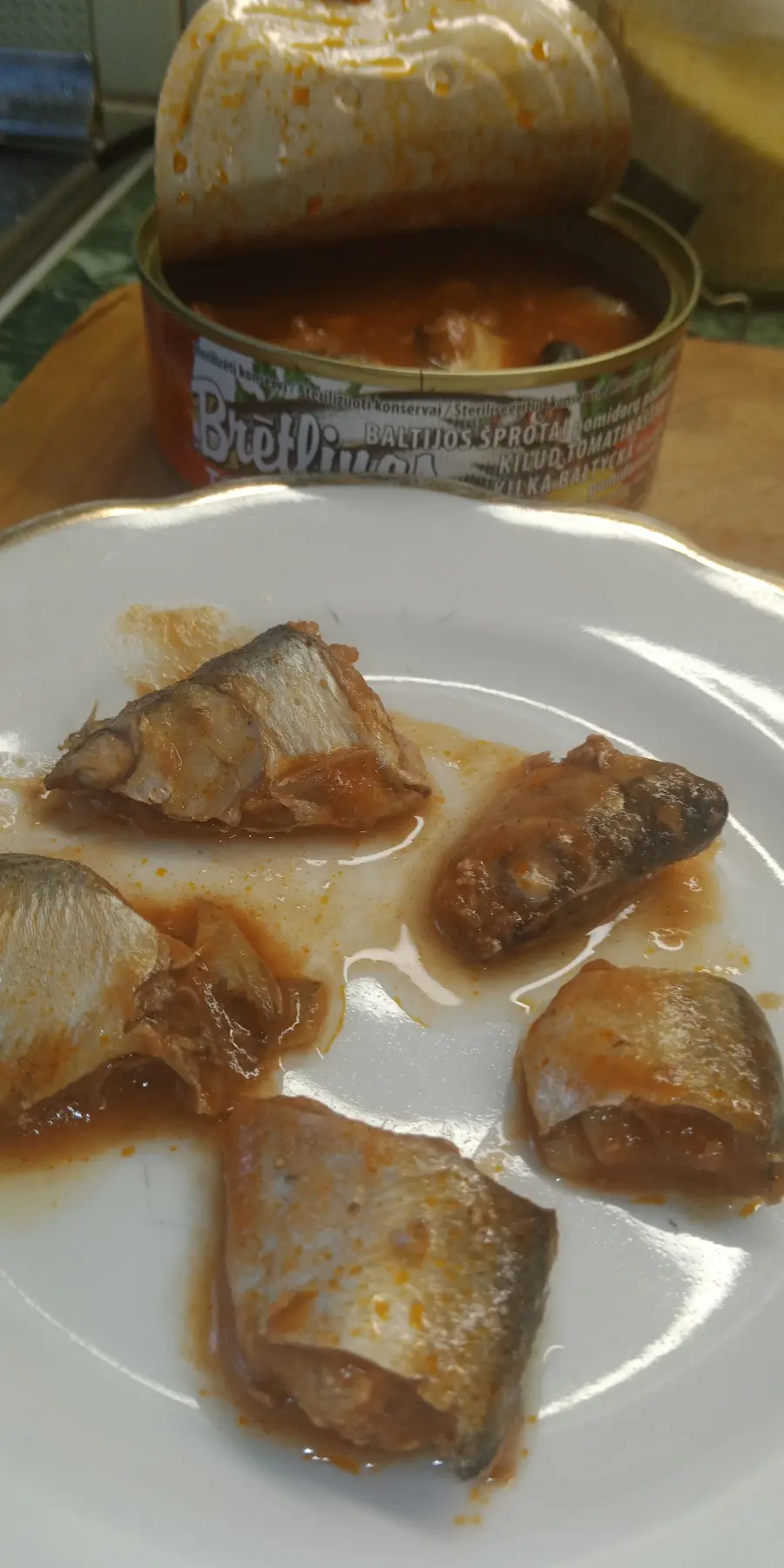 Pretīga kvalitāte. Kā to var ražot? Pat konservētā mājdzīvnieku barība ir labāka sastāvdaļu un kvalitātes ziņā. Kāds šeit redz "Brētliņas tomatu mercē"? Puse bundžas ar neskaidras krāsas šķidrumu. Ja saliktu gabaliņus kopā, sanāktu apmēram 15 centimetrus gara zivs. Un kāpēc nogrieztas galvas liktu bundžās ?! Tiem bija rūgta garša. Es varēju apēst tikai divus gabaliņus. Tas ir kauns Latvijai. Mēs neprotam pārstrādāt zivis? Un zivju konservu cena? Tā ir šausminoša!