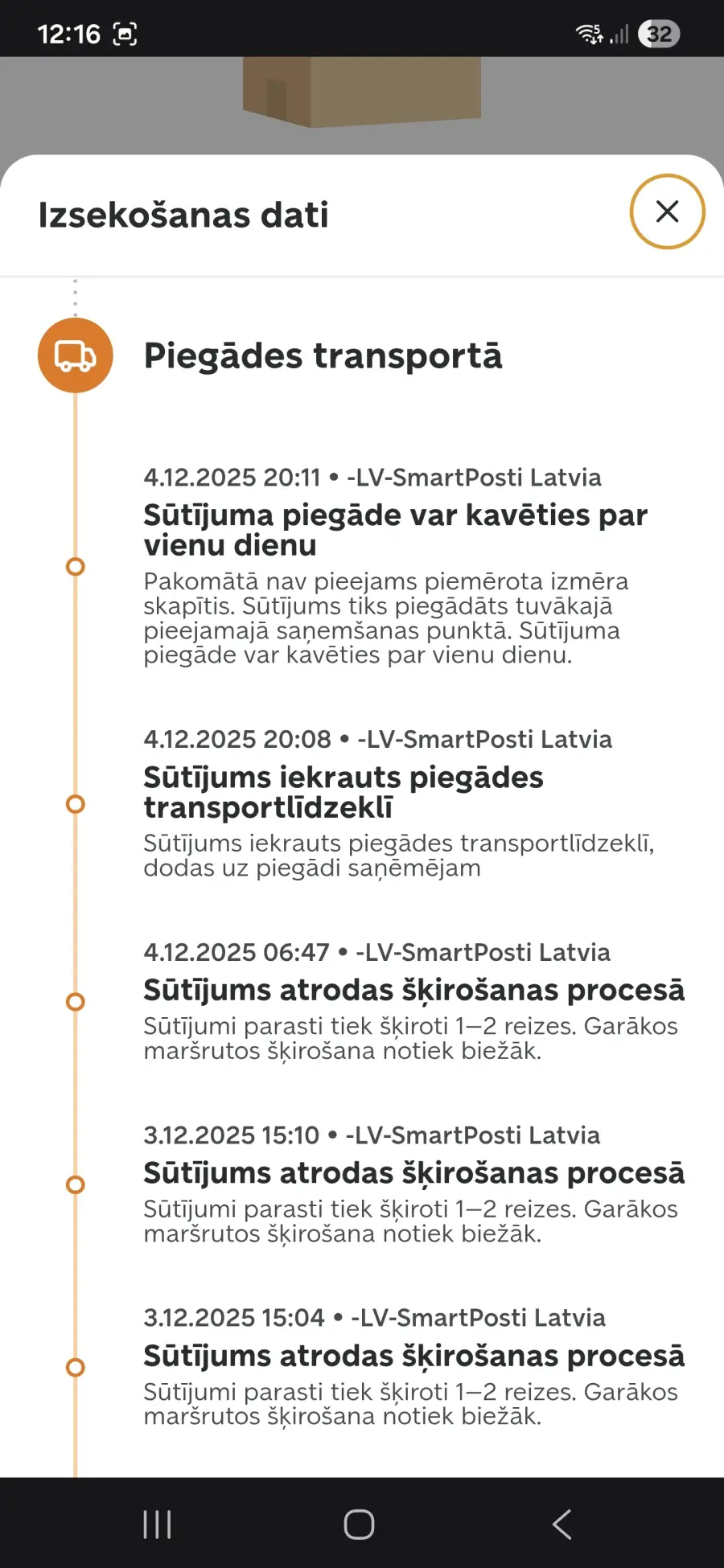 4.12.25 sūstījums kavēsies vienu dienu, šodien jau 11.12.25