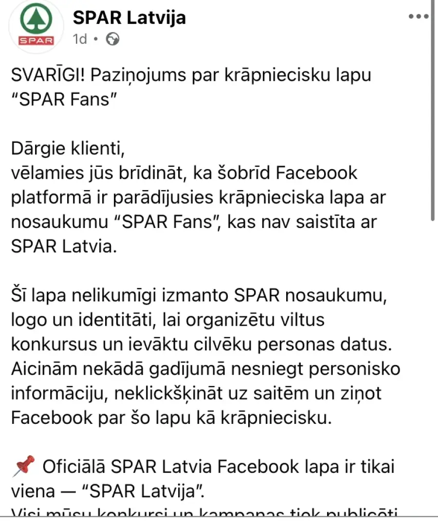 Nebus nedz masinas nedz Kas cits, vini ir izveidojusi fake lapu ar kuru megina apkrapt cilvekus.