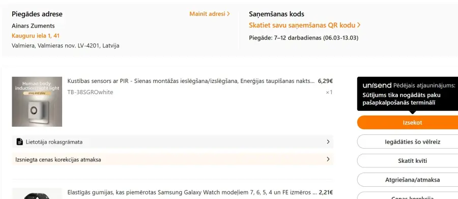 Visi mani pasūtījumi tiek piegādāti, nevis kur pagadās, bet vienmēr uz iespējamo tālāko pakomātu.