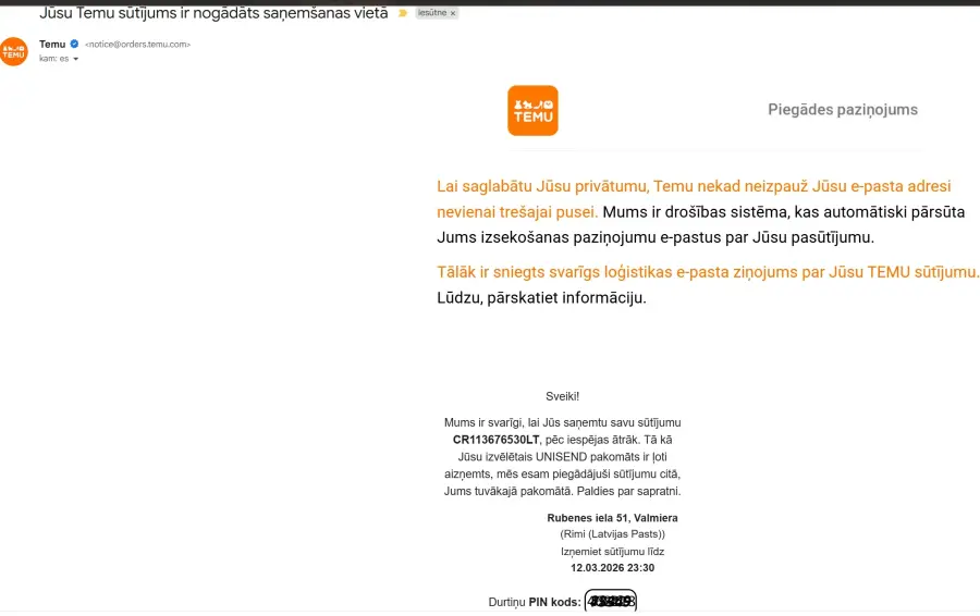 Kā vienoties ar pārdevējiem TEMU, lai pasūtījumi nekad netiktu piegādāti ar Unisend kurjerdienestu ?