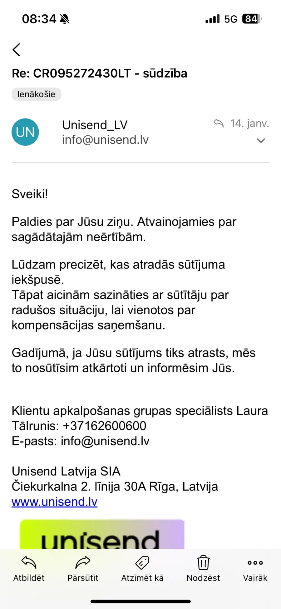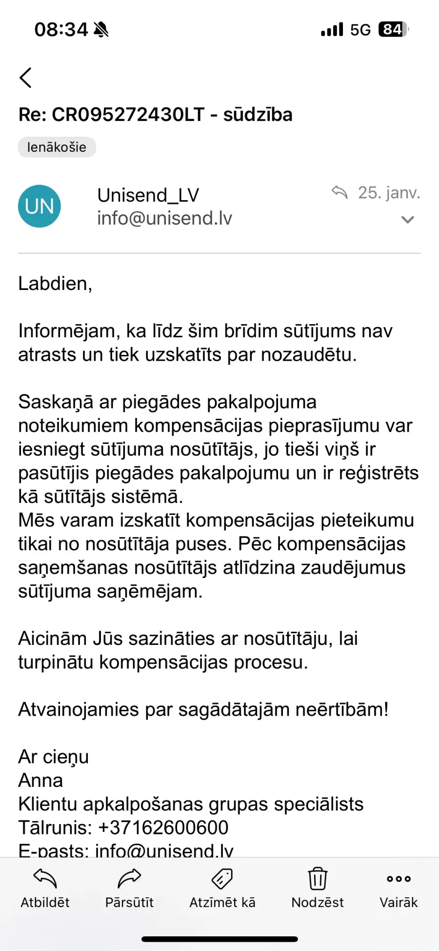 Unisend - Unisend - sūtījumu nozaudē, atbildību neuzņemās!!!