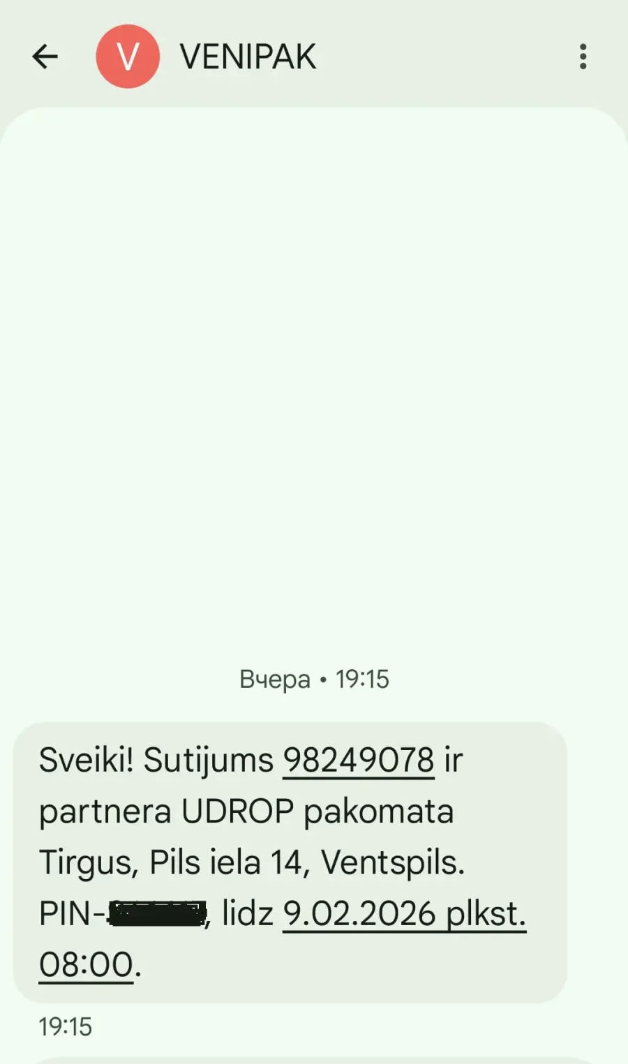 Tīmekļa vietnē ir norādīts, ka sūtījumi “Venipak” pakomātos un saņemšanas punktos tiks glabāti 5 kalendārās dienas.