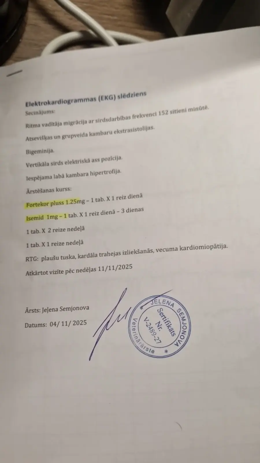 Uztaisot rentgenu un elektrokardiogrammu, kur ārstam bija skaidri redzams, ka suns neizdzīvos (pēdējā sirds mazspējas stadija un pilns plaušu tūska, bet izrakstā tas bija rakstīts gudros vārdos, kurus mēs nesapratām) , šie "profesionāļi" nozīmēja ārstēšanu 4.11. , deva cerību nezinīgam cilvēkam un palaida mūs mājās, izrakstot zāles. Pēc zāļu iedošanas suns nomira pēc 40 minūtēm.